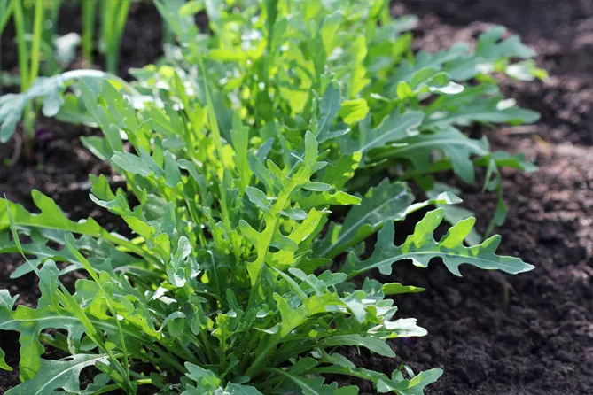 Из-за коротких сроков выращивания и малой занимаемой площади рукколу часто высевают среди других овощей, например: