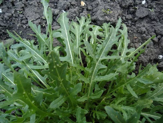 К сожалению, руккола не устойчива к насекомым-вредителям и грибковым заболеваниям. Самый большой враг рукколы – земляная блошка (Alticini). Они прогрызают отверстия в листьях и полностью уничтожают появляющиеся всходы. Чем теплее и суше, тем их больше. Это жуки размером 2 мм, которые при испуге прыгают – отсюда и название. Жук может быстро протыкать листья, губя большую часть урожая.