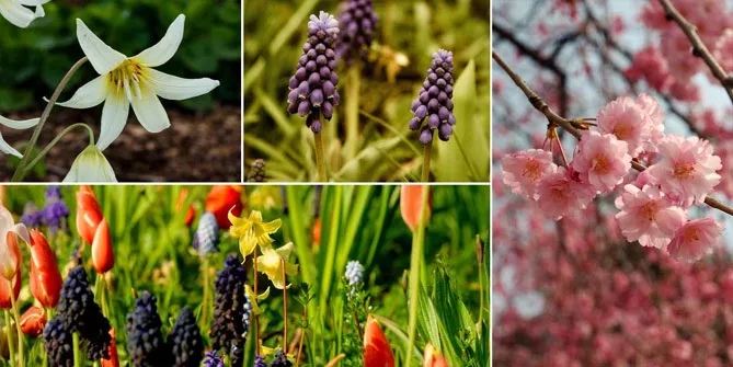 Создайте красивую весеннюю сцену, сопровождая сакуру в саду другими растениями, цветущими в то же время. В конце зимы сад проснется, предлагая великолепное красочное зрелище! Например, можно посадить у ее подножия раноцветущие луковичные цветы: