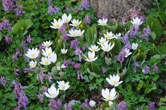 Сангвинария хорошо сочетается со следующими растениями, которые ценят одинаковые условия выращивания: