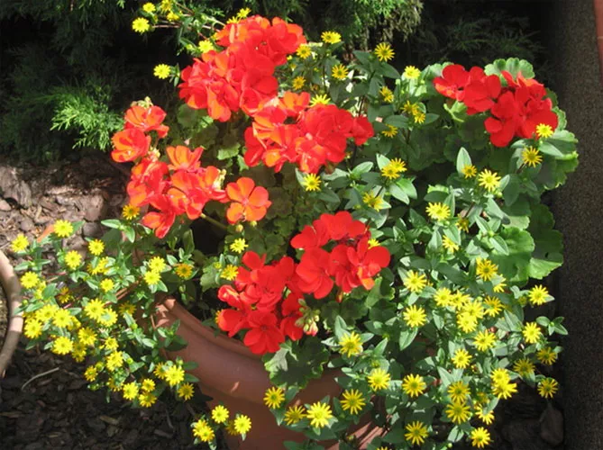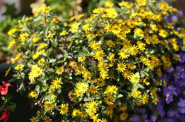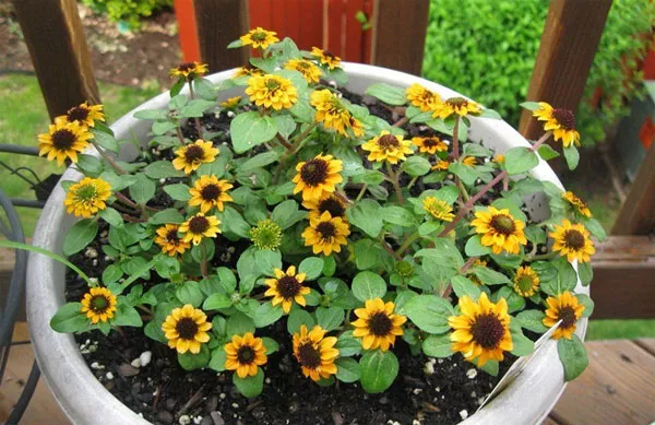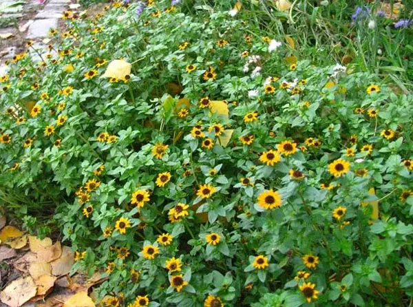 - Санвиталияпрекрасная (Sanvitalia speciosa) – вид достигает высоты 25-30 см, имеет округлю форму кустика.
