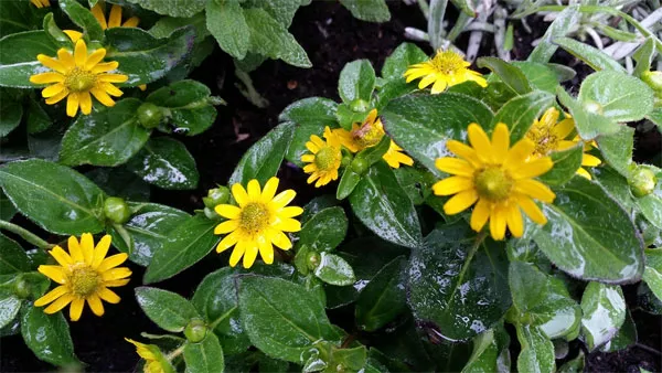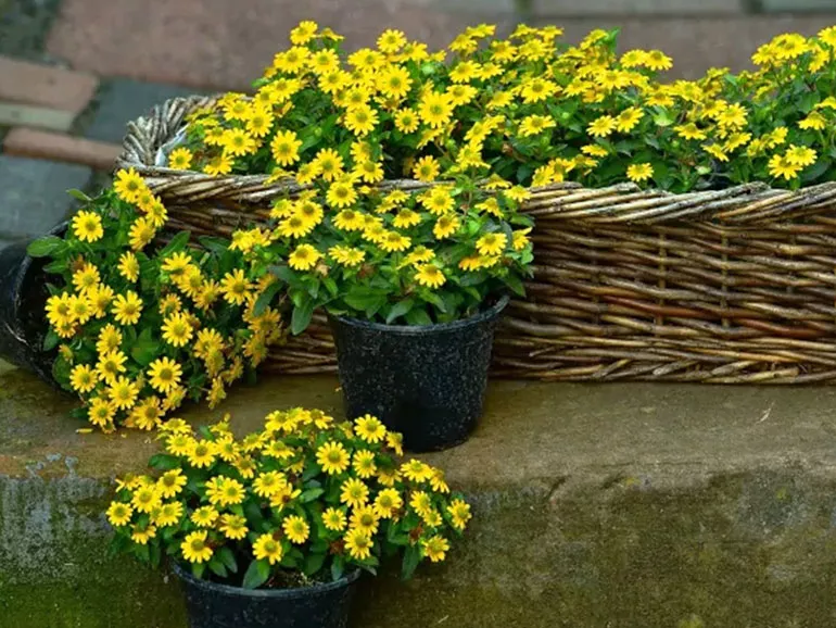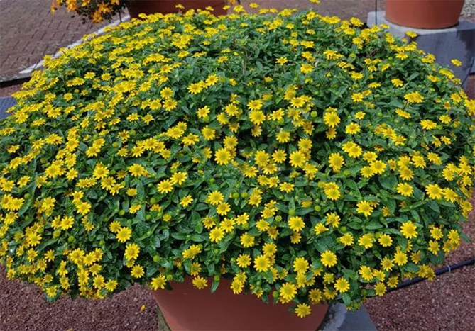 - «Маленькие подсолнухи» – компактный сорт высотой 15 см. Побеги стелющиеся, цветки мелкие, желтые с темным центром. В открытом грунте разрастается в великолепные желтые подушки диаметром 40-50 сантиметров.