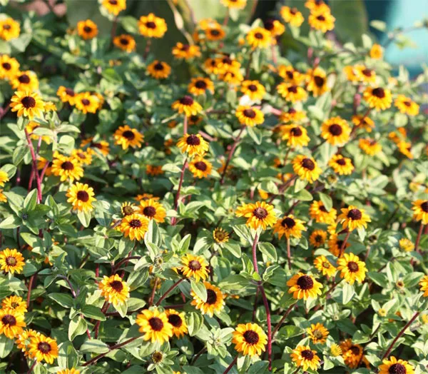 - «Спрайт» Sprite – сорт со стелющимися, слегка красноватыми побегами, высотой 30-35 см. Цветки желтые или оранжево-желтые, мелкие, многочисленные, с выпуклым коричневым центром.
