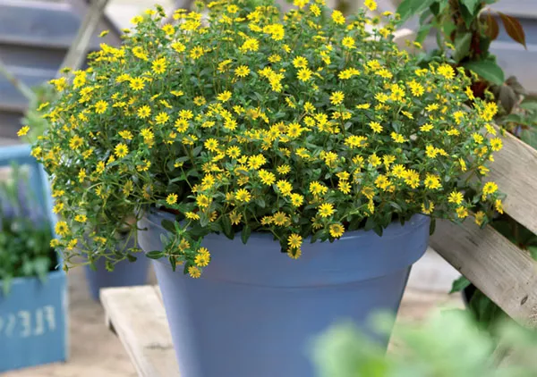 - «Миллион солнц» – ампельный сорт санвиталии. Million Suns размножается семенами, отличается хорошим ветвлением и равномерным ростом. Стебли полусвисающие, цветки маленькие, желтого цвета.