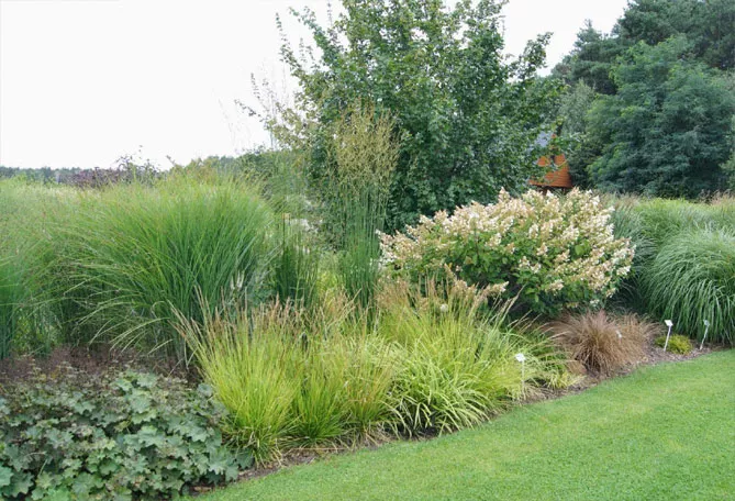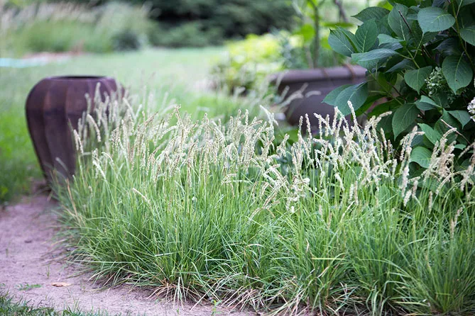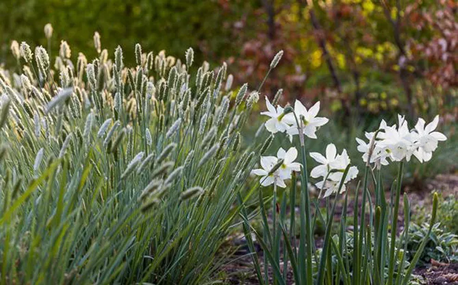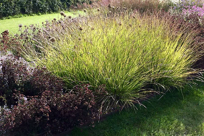 Трава внесет легкость на клумбы с цветками тяжелых многолетников – эхинацеи, восточных маков.
