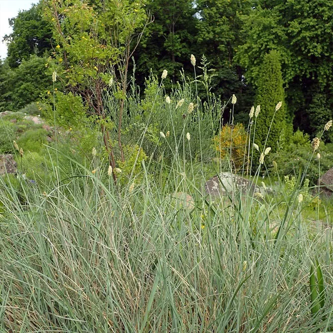 Небольшой, очень аккуратный вид Сеслерия серебристая (Sesleria argentea) цветет с мая по август. Высота в зрелости – 60 см. Вид с тонкой листвой, которая на ярком солнце имеет бледно-светло-зеленый или зеленовато-зеленый цвет. Переносит самые засушливые условия.