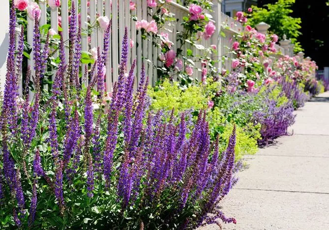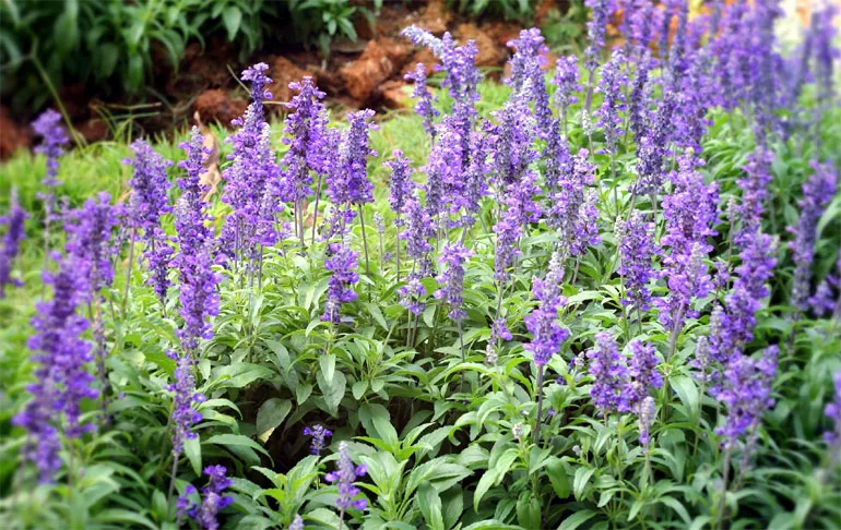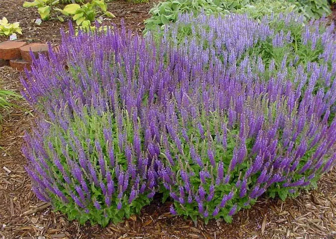 Шалфей прекрасно растет на грядке с зеленью и в качестве границы многолетних клумб. Кусты вырастают до 60 см в высоту и покрыты мелкими, мягкими на ощупь зелеными и серебристыми листьями.
