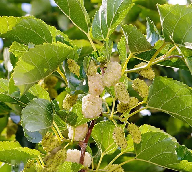 Шелковица белая или Morus alba с древних времен выращивалась для шелководства, разведения шелковичных червей. Гусеница тутового шелкопряда (Bombyx mori) питается исключительно тутовыми листьями. Ее родиной являются территории Китая и Японии, в нашей стране растение не совсем морозостойкое. Его можно выращивать в более теплых районах страны, на защищенных от ветра местах.