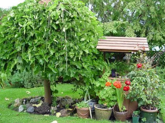 Поставьте под деревом скамейку, чтобы отдыхать в тени, или стол с двумя стульями, чтобы позавтракать летом. Но будьте осторожны! Эти маленькие плоды окрашивают одежду.