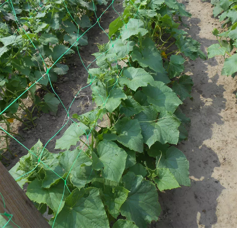 Для формирования кустовых огурцов лучшим вариантом признана сетка. В этом случае кусты получают максимальное количество света и обеспечивается хорошая вентиляция. Опоры следует установить через каждые 2 метра, на них натянуть сетку.