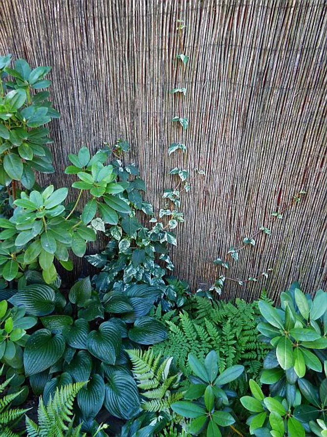 Играйте на контрастах форм и текстур с листвой плюща, некоторые из его видов имеют очень красивую пестроту.