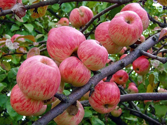Первые плоды на ветках яблони появляются в возрасте 5–7 лет, однако полноценный урожай созревает в 10 или 12, но тогда собирают с одного дерева сорта Штрифель яблок около 40 ведер. И описание, и фото подтверждают, что мощные ветки дерева наклоняются низко к земле под их тяжестью.