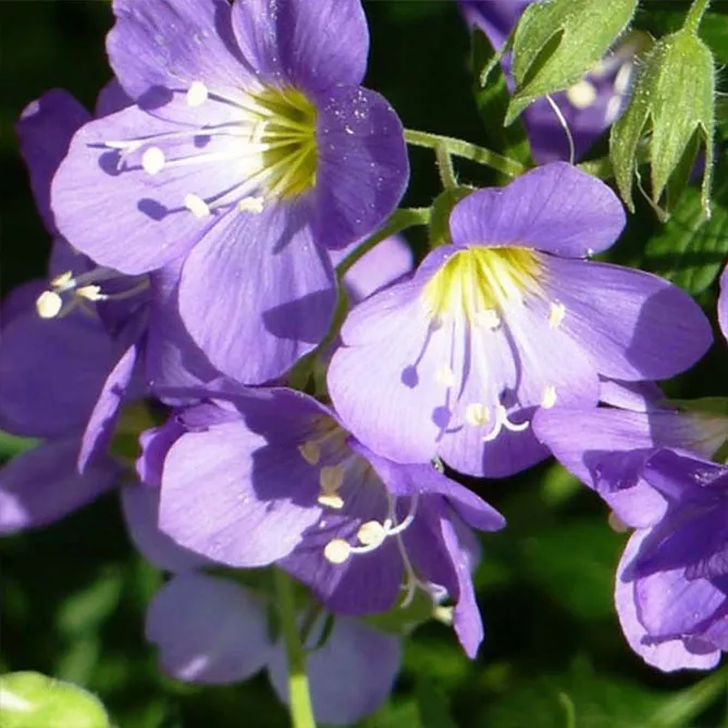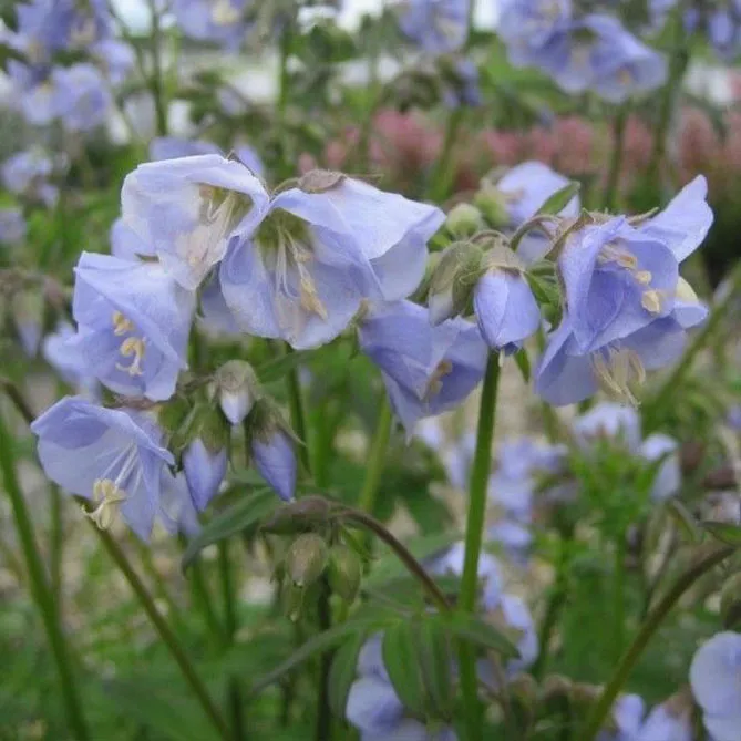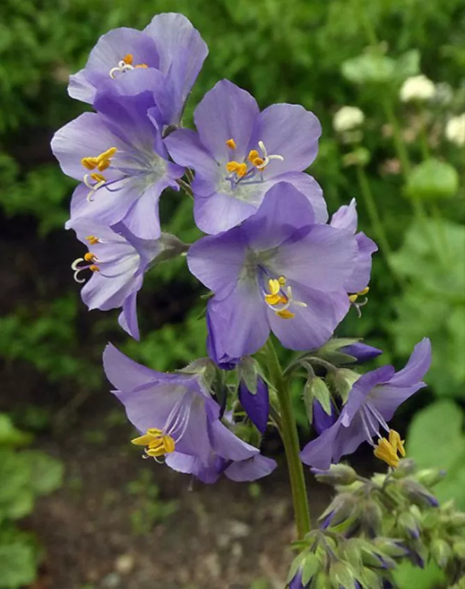 - Синюха ползучая (Polemoniumreptans) Stairway to Heaven – имеет большие бледно-голубые колокольчики.