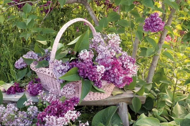 Пудрово-голубые, бледно-розовые или белые цветки сирени раскроются нежным облаком рядом с компактными соцветиями и пышной листвой гортензии, магнолии, каликантуса (чашецветника).