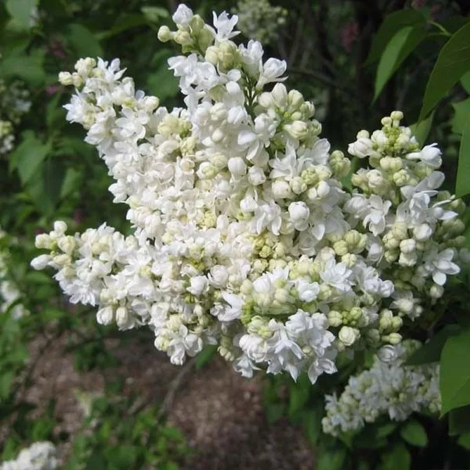 - «Мадам Лемуан» (Madame Lemoine) – цветет куст в мае, высота – 4 м. Сорт получен В. Лемуаном, создателем большинства гибридов сирени. Цветы сорта белые, очень ароматные.