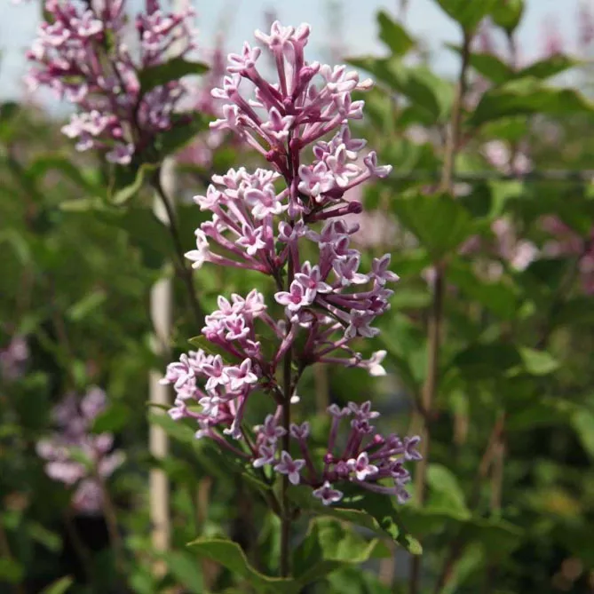 - «Блумеранг Дарк Пёрпл» Bloomerang Dark Purple – карликовый (1,5-1,6 м) гибрид, цветет дважды – с мая по июнь, с сентября по октябрь. Гибрид из исключительной душистой серии Bloomerang продолжительно цветет до осени. Идеально подходит для небольших садов, в одиночку или в цветущей живой изгороди.