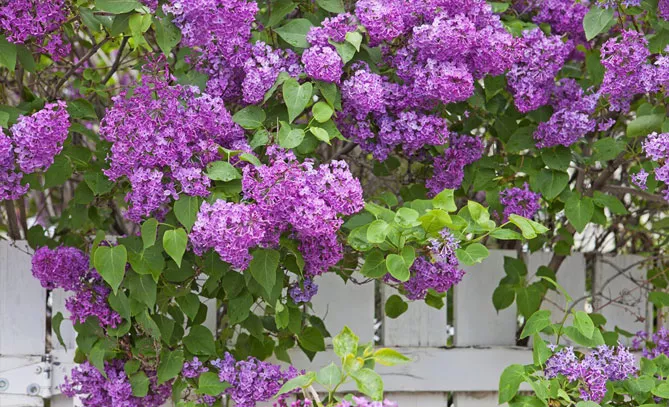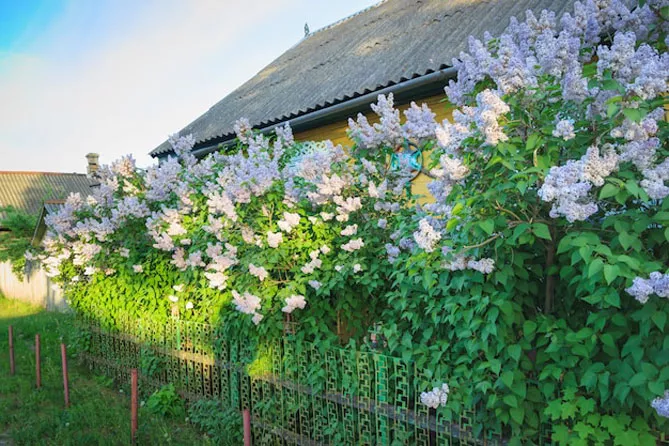 В большой цветущей изгороди сирень смешивается с другими цветущими кустарниками. Цветет сирень после форзиции, но до буддлеи. Она прекрасно сочетается с:
