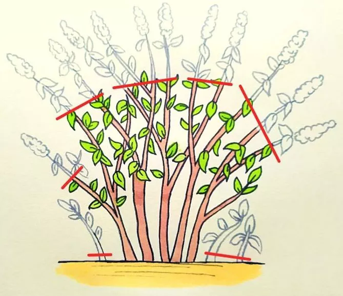 Рекомендуется обрезать каждый год, чтобы спровоцировать появление новых стеблей. Используйте секатор и удалите отцветшие цветы примерно на 30 см ниже соцветий. Удалите побеги, которые образуются у подножия кустарника, потому что они могут его истощать.