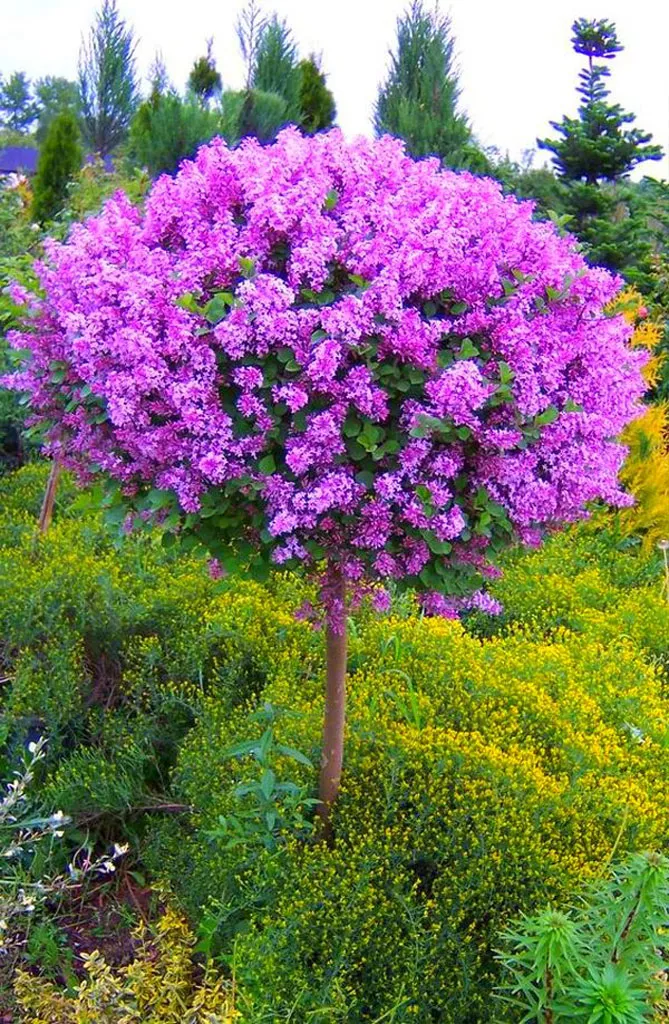 Поиграйте с разными сортами сирени, чтобы создать по-настоящему красочную рощу. Красиво выглядит в саду штамбовая сирень.