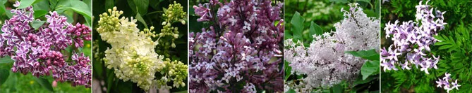 Фото. Несколько сортов: С. Обыкновенная «Сенсация», «Примроуз», С. Мейера «Палибин», С. раскидистая «Мисс Ким», С. Персидская «Лачината».