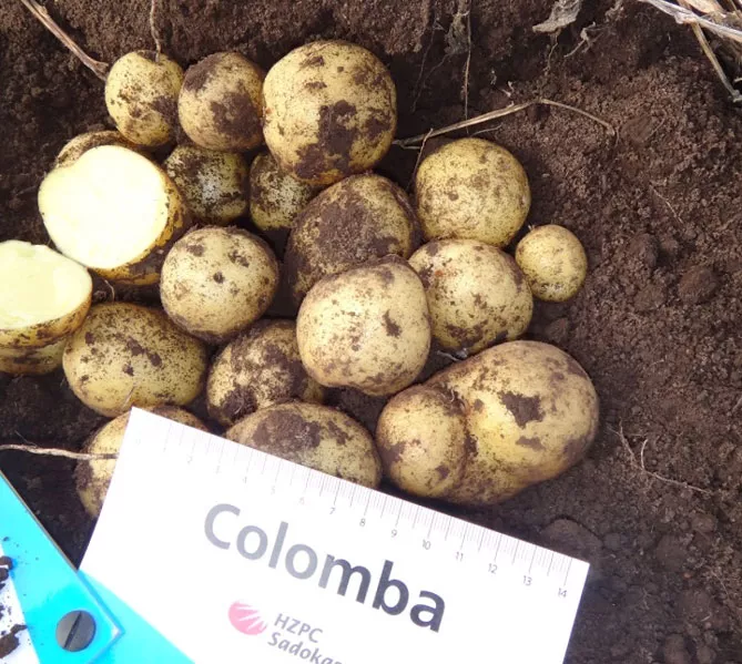 Сорт Коломбо характеризуется скороспелостью. Согласно отзывам картофелеводов, урожай можно начинать собирать через 60 суток после посадки. Урожайность в любой год всегда получается на высоком уровне. Под кустом может находиться до 15 клубней, достигающих хороших размеров к моменту уборки.