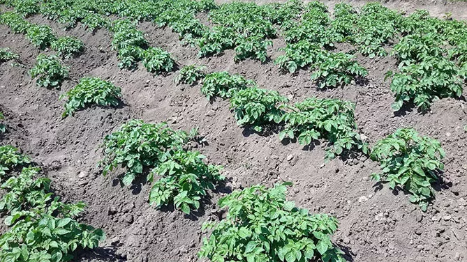 Схема посадки картофеля сорта Крепыш: 65-70 × 25-30 см.