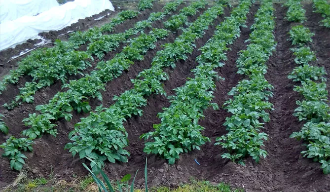 На качество урожая картофеля особенно влияют температура в течение дня и общее количество осадков – в идеале дожди должны быть регулярными, но не затяжными. При недостатке осадков проводят поливы, за что картофель отблагодарит хорошим урожаем и быстрым созреванием – оптимальная влажность грунта может ускорить созревание урожая на неделю.