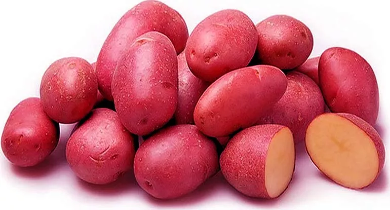 Уже по названию понятно – кожура плода имеет красный цвет. А вот мякоть светло-желтая. Этот сорт любят хозяюшки. Объяснить это легко – клубни ровные, чуть продолговатые, массой 100-120 грамм. Глазки у картошки небольшие, почти незаметные.