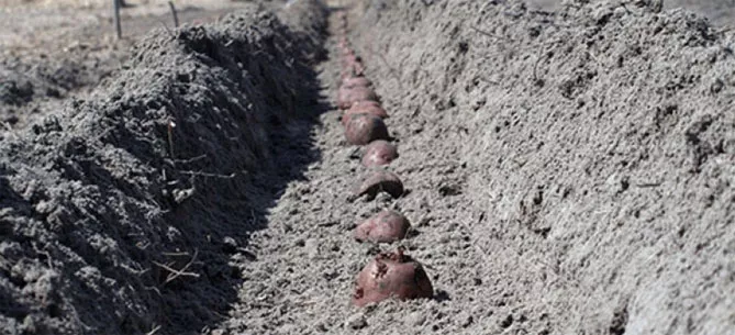 - Высаживается клубень картофеля, сверху засыпается землей.