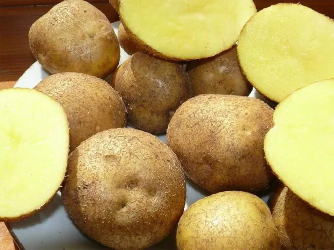 | Вкусовые качества | После варки мякоть не изменяет цвет, остается плотной, имеет насыщенный картофельный вкус, рекомендуется для применения в салатах, рагу, первых блюдах, подходит для жарки. |