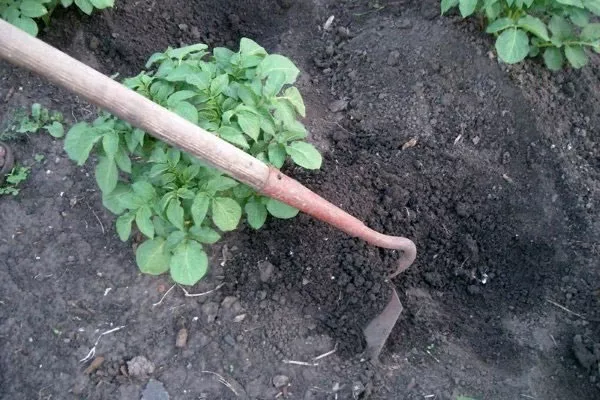 После посадки картофельное поле пропалывают, удаляя сорную траву. Окучивать начинают после получения обильных всходов. Для этого землю нагребают с двух сторон на молодые побеги, формируя поперечные холмы. Такой способ ухода позволяет защитить ростки от заморозков, улучшает проницаемость почвы, усиливает рост корневой системы и процесс формирования клубней.