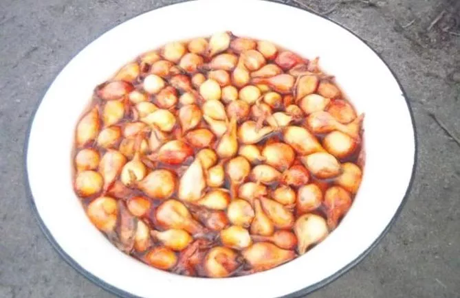 Наиболее популярный среди дачников способ посадки Центуриона – из готового севка, приобретенного в садовых магазинах. Севок хорошего качества не нуждается в дополнительных обработках и готов к посадке. При сомнении в его качестве проводят обработку розовым раствором перманганата калия (марганцовки) – замачивают на 30-40 минут.