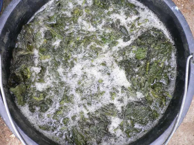 Последний вариант наиболее доступен, так как крапива присутствует практически на любом садовом или дачном участке. Для приготовления удобрения крапиву плотно набивают в бочку, другую подходящую емкость. Емкость доверху доливают водой. Когда на поверхности жижи появятся пузырьки, удобрение готово к использованию. Перед поливом настой разводят в пропорции 1:10.