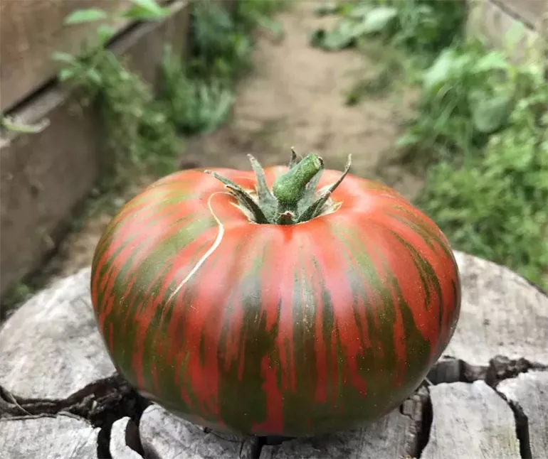 Отличный сорт, красивые полосатые томаты шоколадного цвета в зеленую полосочку, крупные (250-300 г)! Вкус – сладкий, сочный, очень понравился! Детерминант. У меня получился поздний. Мой фаворит!