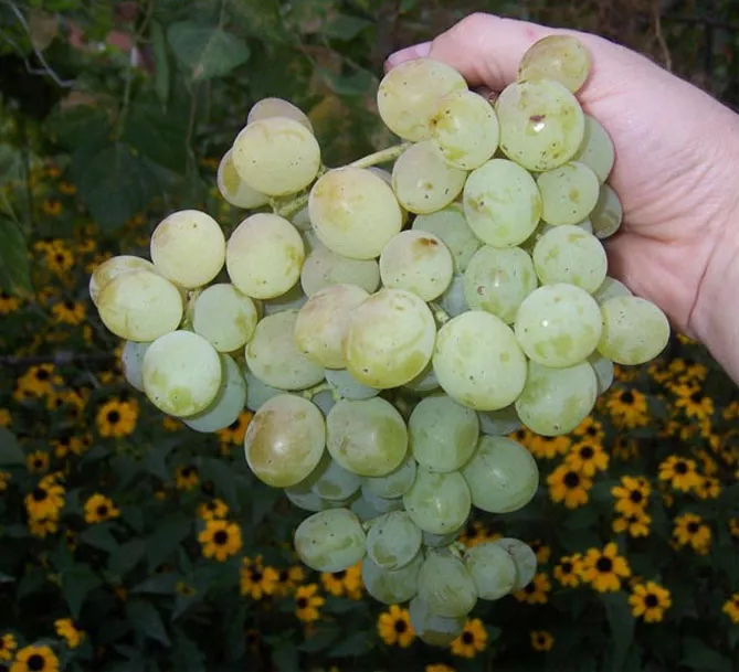 Родительские формы: сорта Восторг и Оригинал. Ягоды белые, весом 6-8 г, грозди – по 600-900 г. Отличается повышенной устойчивостью к типичным болезням культуры и ранним созреванием (105-110 дней). При обрезке оставляют длинные лозы – от 8 до 10 глазков.