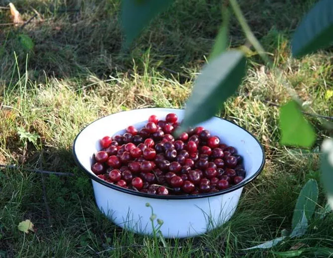 Посадили Владимирскую лет 10 назад. Вкусная вишня, темная, но мелкие ягодки и урожай небольшой. Дерево выросло высокое. Еще на участке растет Любская и Молодежная. Опыляют друг друга. Вот Любская дает гораздо больший урожай, ягоды крупнее, но вкус хуже, кислее, пускаем ее на компоты и варенье.