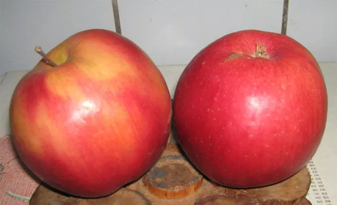 Форма плодов – ребристая, округло-конусовидная. Воронка средней величины, остро-конической формы. Кожица плода крепкая, гладкая, имеет глянец. Плод окрашен неравномерно. Основная окраска зеленоватая, на её фоне просматривается красноватый румянец.