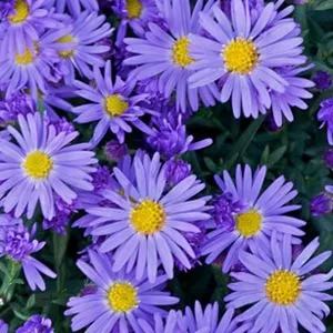 Aster laevis – многолетняя астра, образует множество соцветий с широкими листьями и большими фиолетово-голубыми цветами. Устойчива к мучнистой росе.