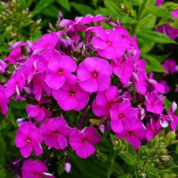 - «Далила» Delilah – компактный сорт фиолетового флокса с пурпурным оттенком, достигает 50-60 см, ширина примерно 30-45 см. Фиолетово-розовые, густо собранные цветы красиво смотрятся на фоне зеленых удлиненных листьев. Красивые соцветия украшают сад с июля по сентябрь, имеют приятный сладкий аромат.