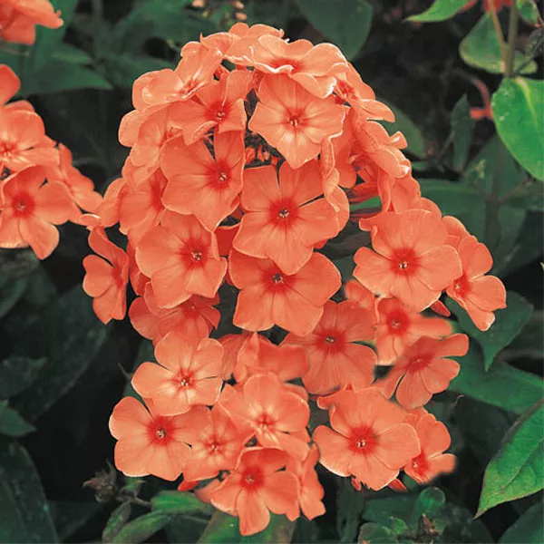 - «Коралл» Coral – миниатюрный карликовый сорт флокса из серии «Flame», отличающийся красивой коралловой окраской крупных соцветий. Достигает небольших размеров (до 30 см). Создает кустистые растения с пышными соцветиями. Цветет долго, обильно.