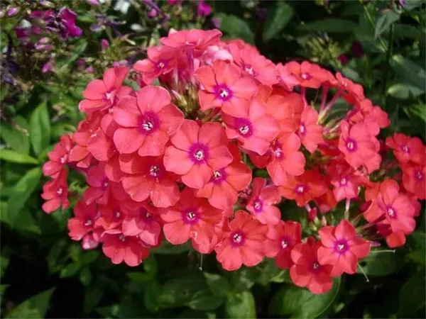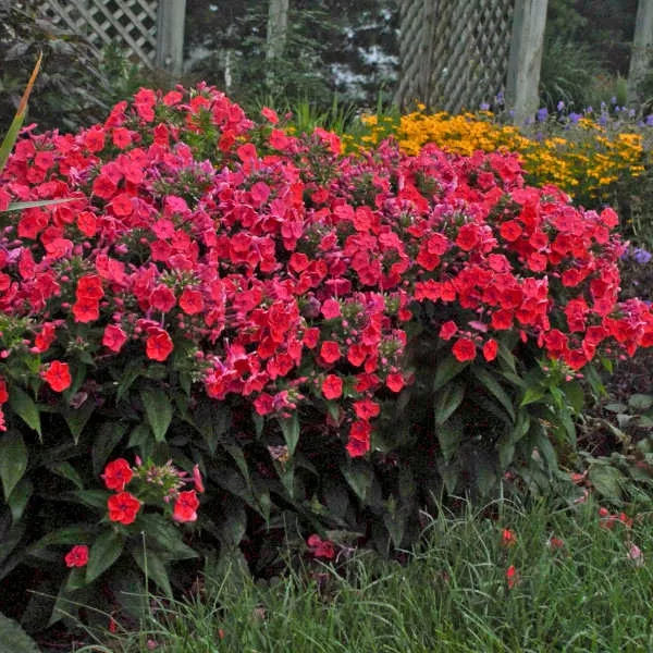 - «Флейм ред» Flame Red – красивый карликовый сорт красного флокса, вырастающий примерно до 30-50 см. С июля украшает сад чудесными цветами насыщенного красного цвета с оттенком розового. Для сорта характерно обильное цветение, густо расположенные соцветия. Цветы источают приятный сладковатый аромат, медонос.