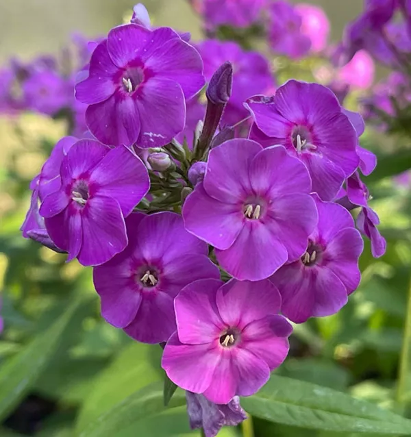 Многолетнее растение метельчатый флокс (Phlox paniculata) характеризуется жесткими побегами, высотой до 1,2 метра. Метелки цветут летом, цветки яркие, что привлекает в сад много бабочек. Цвет лепестков варьирует в зависимости от сорта, типичны пурпурно-фиолетовая или пурпурно-розовая окраски лепестков. Полностью морозостойкий вид.