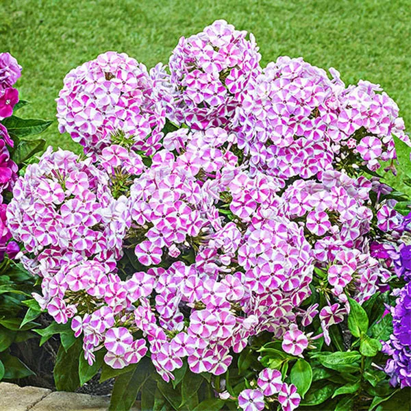 - «Виолет шарм» Violet Charm – низкий, компактный сорт из серии Flame, отличающийся компактностью, достигает высоты и диаметра кустика 50 см. Очаровательные пурпурные цветки появляются с июня по сентябрь. Дополнительным украшением являются белые глазки, к размывающиеся ближе к концу лепестков.