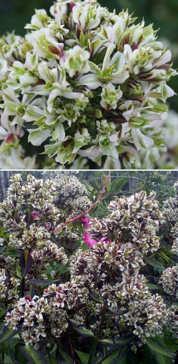 - «Твистер» Twister – сорт с пленительными двухцветными цветками, среднерослый (60 см), образует эффектные скопления. Прямые побеги по всей длине покрыты темно-зелеными остроконечными ланцетными листьями. Милые белоснежные цветы, украшенные тёмно-розовыми полосами, идущими вдоль лепестков, образуют полукруглые компактные зонтики на верхушках побегов и выглядят так, будто нарисованы вручную кистью. Соцветия появляются с июля по август, завораживая сладким ароматом.