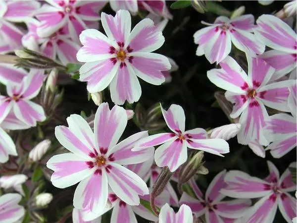 - Сорт вида Phloxdouglasii «Крекерджек» Crackerjack низкорослый, с интенсивной окраской цветов. Обильно цветет в апреле-мае. Цвет насыщенный, карминно-розовый. Crackerjack – медленнорастущий, очень компактный сорт, достигающий 5-10 см в высоту и 30-50 см в диаметре.