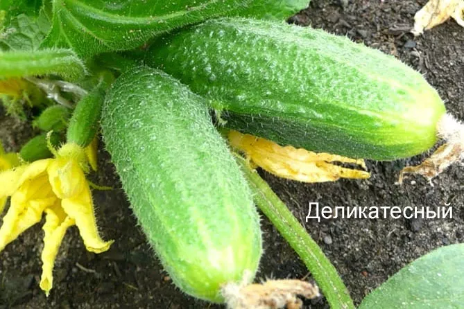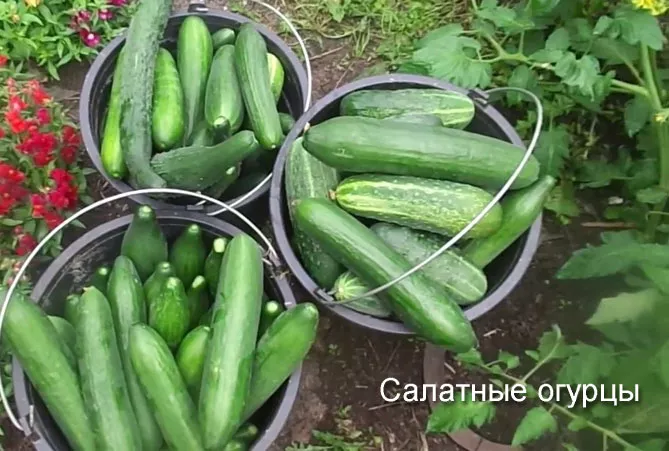 - Сорт салатных огурцов. Имеют плотную и хрустящую структуру. Подходят для потребления в сыром виде. При засолке плоды становятся мягкими с горьким привкусом.