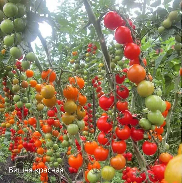 Растения со стеблями до 250 см. Очень урожайный сорт. В одной кисти формируется до 50 мелких томатов. Внешне они напоминают куст, усыпанный ягодами. Вкусные. Созревают через 3 месяца после посева.