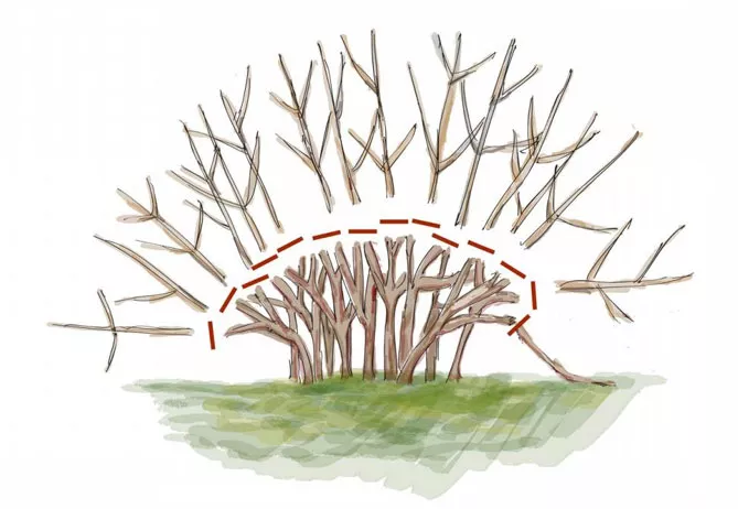 После цветения нужно удалить отцветшие соцветия вместе с некоторыми побегами, расположенными под ними (выполнить прореживание). Обрезают кустарник, образуя полушарие.
