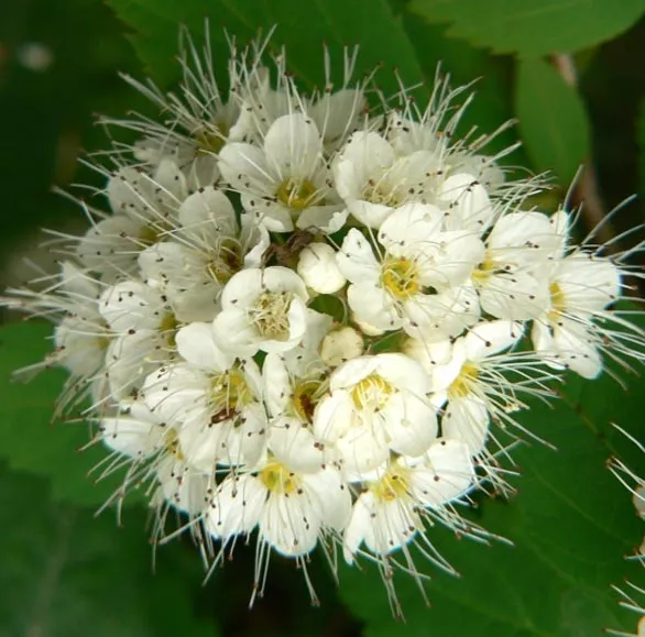 В конце мая на кусте появляются многочисленные белые цветки, сформированные в плотные выпуклые соцветия, расположенные на верхушках боковых побегов. Тычинки намного длиннее лепестков, что придает соцветиям пушистый эффект. Растение, выращиваемое в хороших условиях, часто повторяет цветение в июле-августе. Это нетребовательный кустарник, ему достаточно обычной, средней садовой почвы, умеренно влажной. Предпочитает солнечные или полутенистые позиции. Устойчив к морозу, загрязнениям. Это быстрорастущее растение.