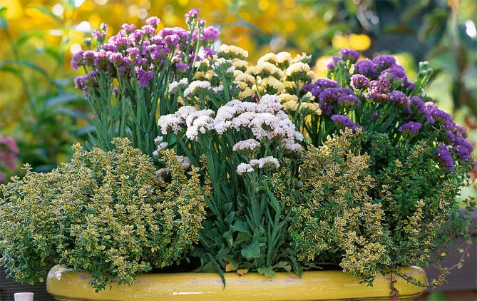 Цветы статицы отлично сохнут, их цвет остается неизменным в течение многих месяцев или даже лет, поэтому они являются очень желанным элементом многих сухих и осенних букетов.